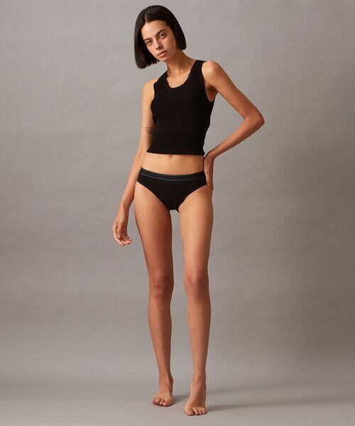 極力シームレスで仕上げ、ストレスフリーな着用感を目指したビキニショーツ。自然なカッティングでベーシックさがあり、誰もが取り入れやすいアイテムとなっています。滑らかな質感で伸びも良く、快適な穿き心地です。ウエストバンドには配色ラインを施して、中央に印象的なCalvin Kleinロゴをあしらっています。同シリーズのブラとセットで取り入れるのがおすすめです。